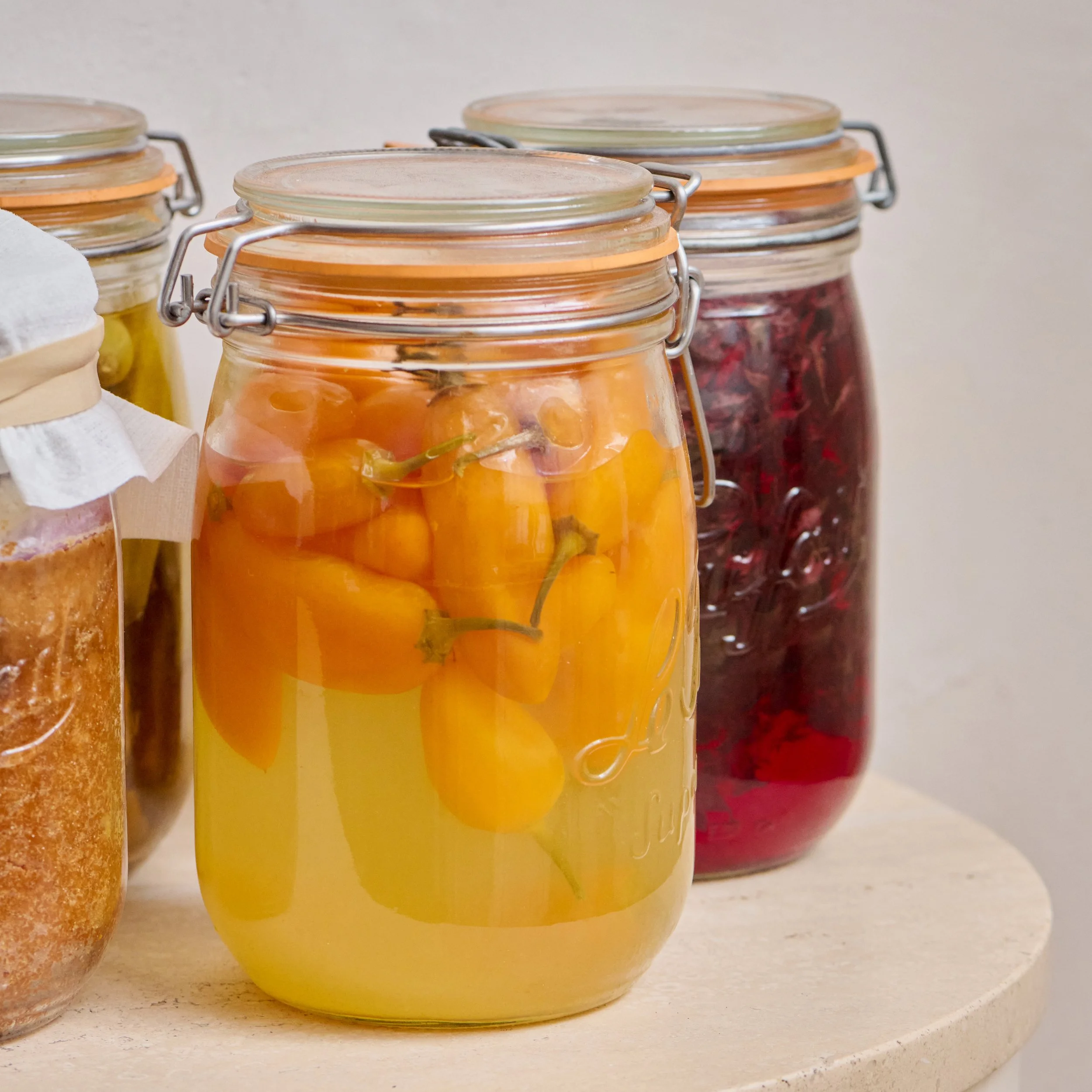 Dans nos réserves, plus de 300 bocaux renferment infusions, herbes, macérations et fermentations maison — de nouveaux goûts en préparation.